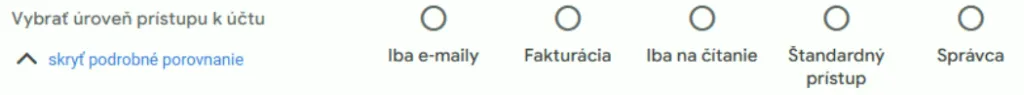 - Vyberte úroveň prístupu “Správca”. Ak vám agentúra robí audit, postačujúci je aj prístup “Iba na čítanie”.