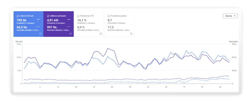 - Zobrazenia vo vyhľadávačoch narástli z 957 000 na 4,91 milióna (obdobie 3 mesiace)